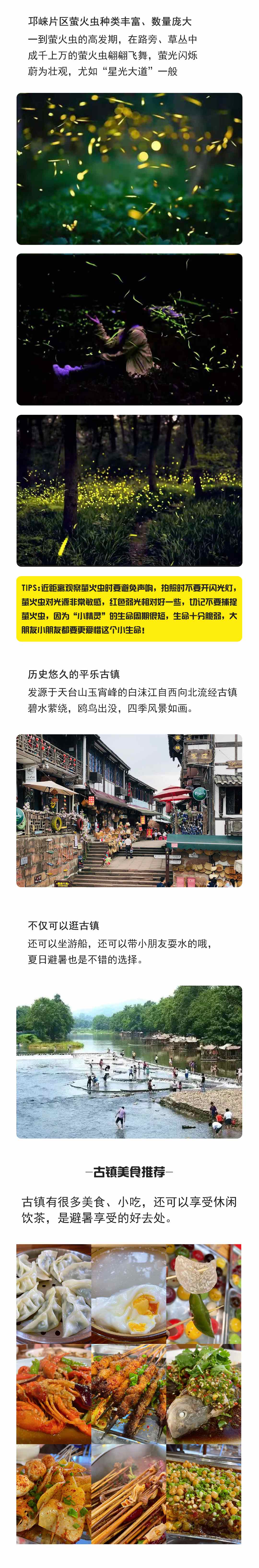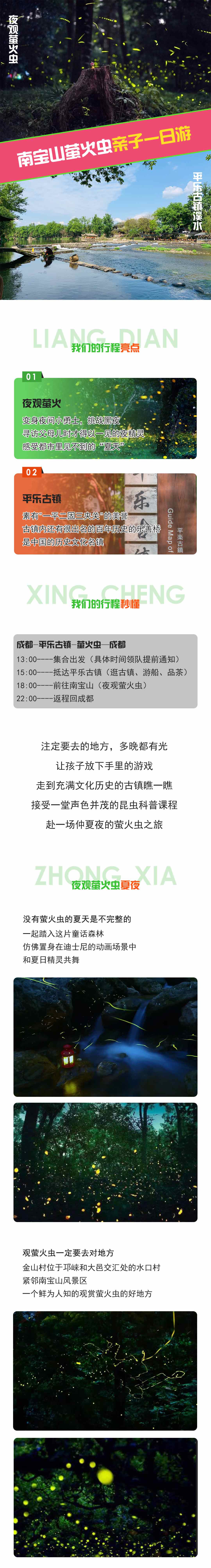 亲子游不只属于孩子,这也是一个培养亲子间情感的过程。放下家长的身份与负担,站在孩子的角度看世界,让自己再过一次童年,只有感同身受,才能更好的与孩子心灵相通。 [产品性质]本产品为亲子游,儿童需家长陪同参加。大小同价 [成团须知]15-30人成团 [行程亮点]夜观萤火虫,游玩文化古镇 [集合解散]全国出发,全国散团 [特别告知]本产品属于亲子游产品,真纯玩无购物。