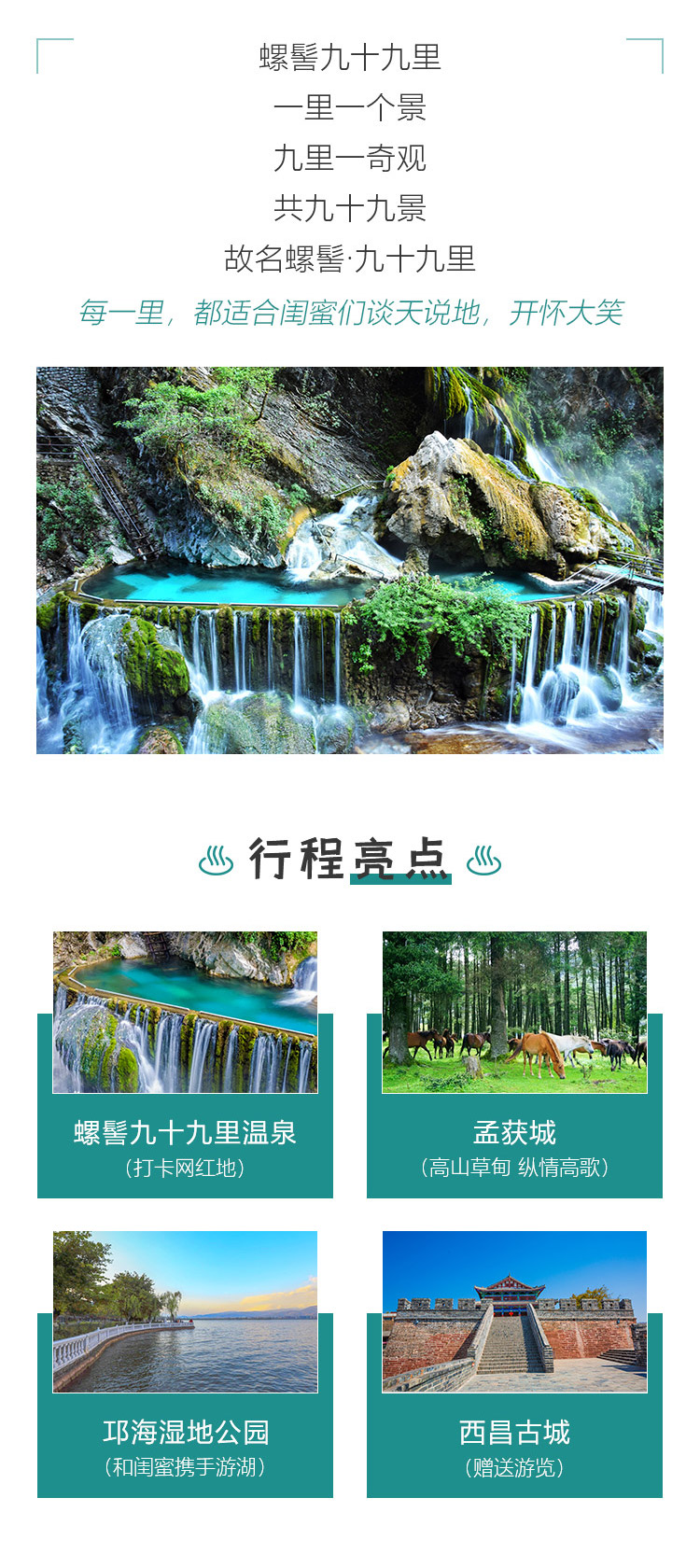 景观亮点:蓝天白云,温泉瀑布,环湖信步,生态草甸;
